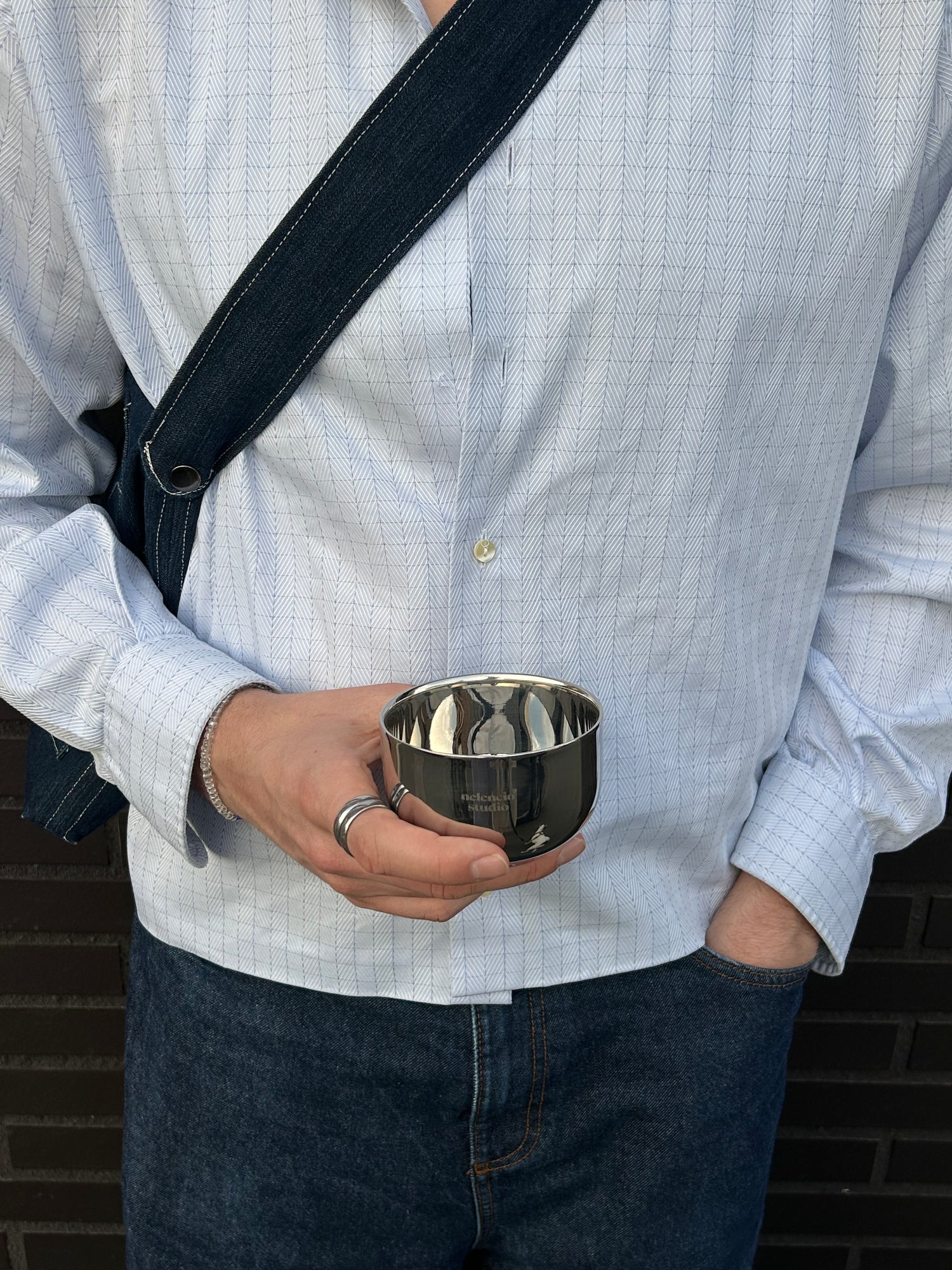the nelencio studio cup classic is an eye-catcher in any culinary setting. with its high-gloss polished finish and clear shape, it clearly stands out from everyday cups. minimalist, timeless, elegant and modern, it stands out particularly well with its enchanting reflections and glints in the sunlight. the absence of a classic cup handle rounds off the brutalist design of the cup.